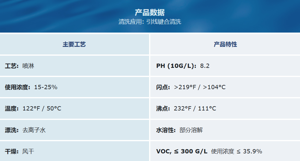 MICRONOX MX2127 is a single-phase, semi-aqueous general-purpose cleaner, specifically designed for IGBT modules using various copper- or nickel-clad DBC substrates. With its excellently balanced formulation, MX2127 can effectively clean residues from various lead-free process fluxes. After cleaning, it maintains the original metal substrate condition, ensuring strong adhesion for subsequent wire bonding and encapsulation processes. MICRONOX MX2127 is suitable for use in spray equipment, allowing effective cleaning at low concentrations and low operating temperatures, and is easy to monitor.