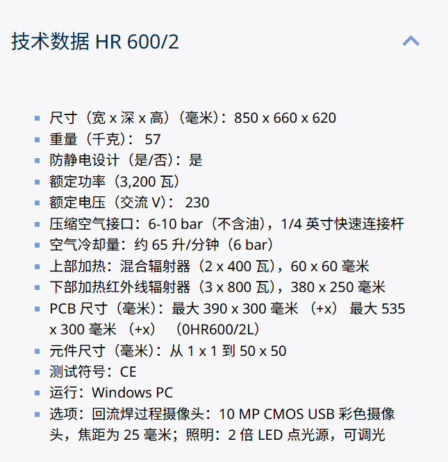 • Even, large-area infrared under-temperature, with three heating zones, each with a power of 800 watts